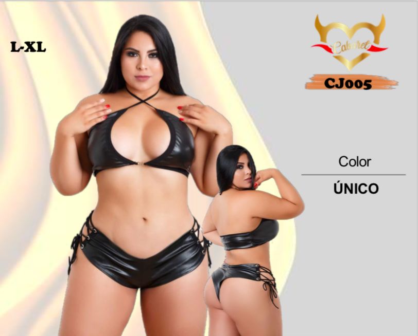 Conjunto de dos piezas, perfecto para resaltar tu figura y sensualidad. Conjunto linea curvy, tela tipo cuerina. La sensualidad puede hacer parte de vida. Talla L-XL