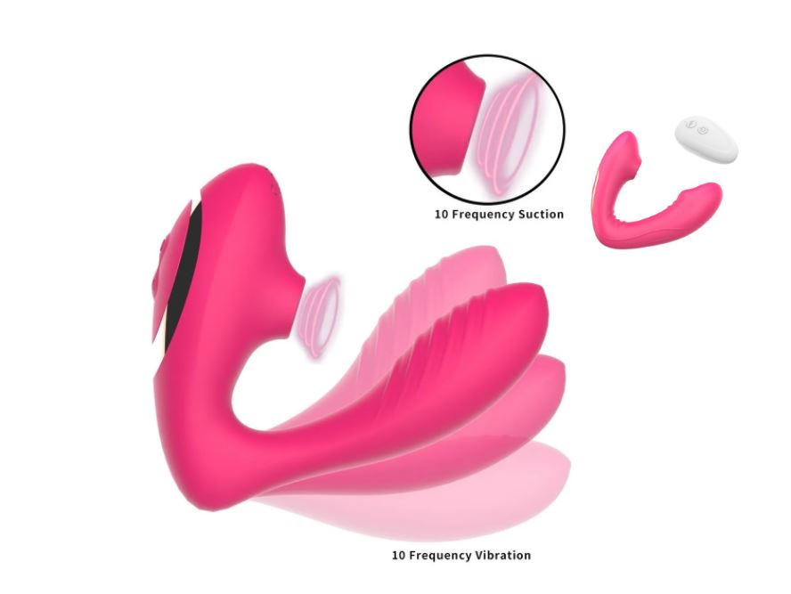 • Vibrador Succionador 2 en 1, doble estimulación, (Clitorial y Punto G) • Control Remoto • Doble Función, Vibrador y Succionador • 10 modos de Vibración y 10 modos de Succión • Recargable USB • Resistente al Agua • Ancho: 10 cm. Longitud: 12.5 cm